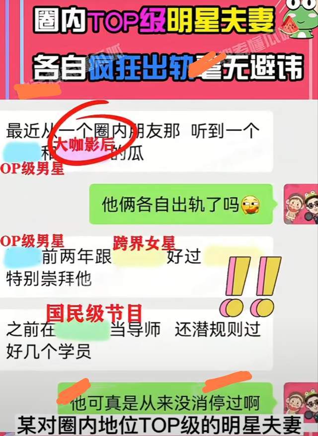 而男明星自己也不满足于出轨一个女人,他曾经在某部“国民级”的综艺节目中担任“导师”,利用自己的选人权利和个人魅力,各种“潜规则”女学员,基本上从来没让自己的身体消停过。